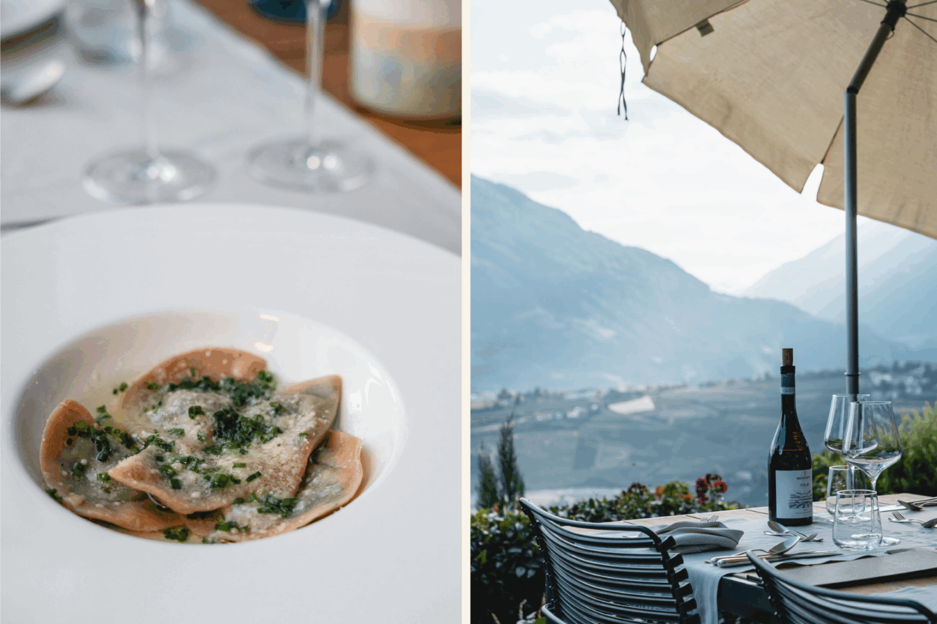 Außerdem Pflicht: Besuche im Außen- und Sky-Pool, eine Yoga-Einheit im hoteleigenen Studio und eine Bastel-Session mit der Floristin des Hauses. Auch das Aktiv-Angebot ist riesig und umfasst mehrere geführte Wanderungen täglich – und das komplett kostenlos. Stärken könnt ihr euch dafür an dem vielleicht besten Frühstücksbuffet, das wir je gesehen haben. Auch ins Bett wird garantiert nicht hungrig gegangen: Jeden Abend wartet nämlich ein 5-Gang-Menü.