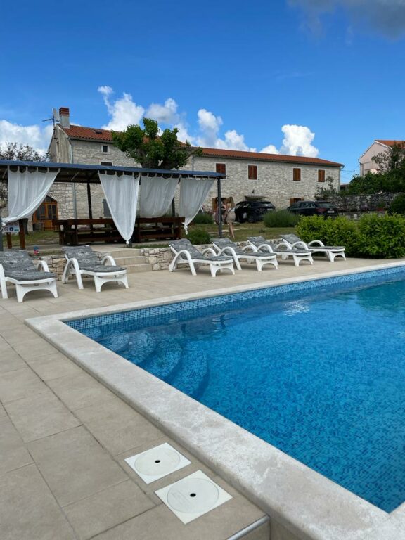 Als „kleines Stück Paradies“ angepriesen, hält die Villa Beta in Bičići, was sie verspricht. Mitten in Istrien zwischen Pula, Rovinj und Rijeka gelegen ist sie der perfekte Ausgangspunkt für einen Ausflug ans Meer, einen Bummel durch die Stadt oder natürlich einfach zum Verweilen, denn die Villa liegt in einer sehr ruhigen Gegend mit Blick ins Grüne. Der Garten ist riesig, der Pool sehr gepflegt und die Zimmer bieten Platz für neun Personen. Die Unterkunft ist auch für Reisende mit Kindern bestens geeignet.