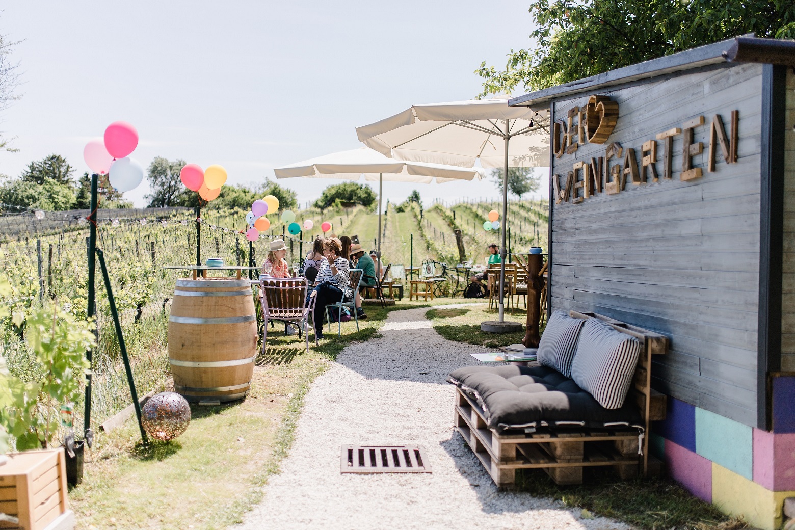 Masterminds hinter dem Weingut inklusive Lokal namens Weingarten sind die Quereinsteiger*innen Marlene, Michi, Peter und Dominic, die sich damit einen Traum erfüllt haben. Neben Klassikern wie Weißem Spritzer oder Gemischtem Satz gibt’s fruchtige Drinks à la Veilchen-, Melonen- oder Marillen-Spritzer. Als Unterlage schmaust ihr hausgemachte Aufstrichbrote. Außerdem bekommt ihr weitere Weine aus der Region zum Probieren vor Ort oder zum Kaufen in Flaschen.