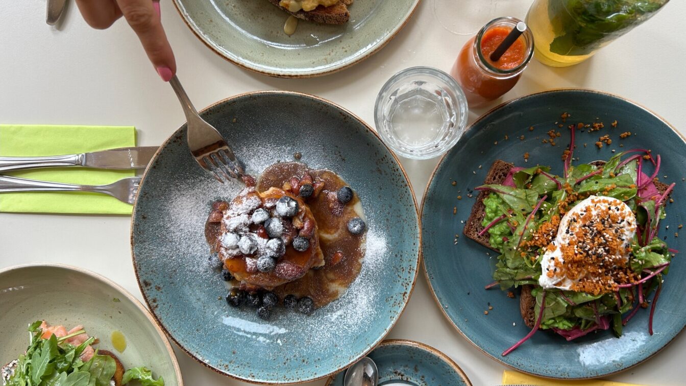 Gut gehen lassen könnt ihr es euch den ganzen Tag lang: angefangen vom Frühstück mit allerhand köstlich belegten Joseph Broten, Heldenbeer-Pancakes, verschiedenen Omelettes oder Frühstückskombis. Ab 11.30 Uhr gibt’s Mittagessen und am Abend könnt ihr euch Köstlichkeiten wie das Ramasuri-Backhendl, hausgemachte Erdäpfelgnocchi oder Butterschnitzel vom Waller genehmigen. Dazu tischt euch das Team Spritzer, Aperitivo, Cocktails und österreichische Weine auf.
