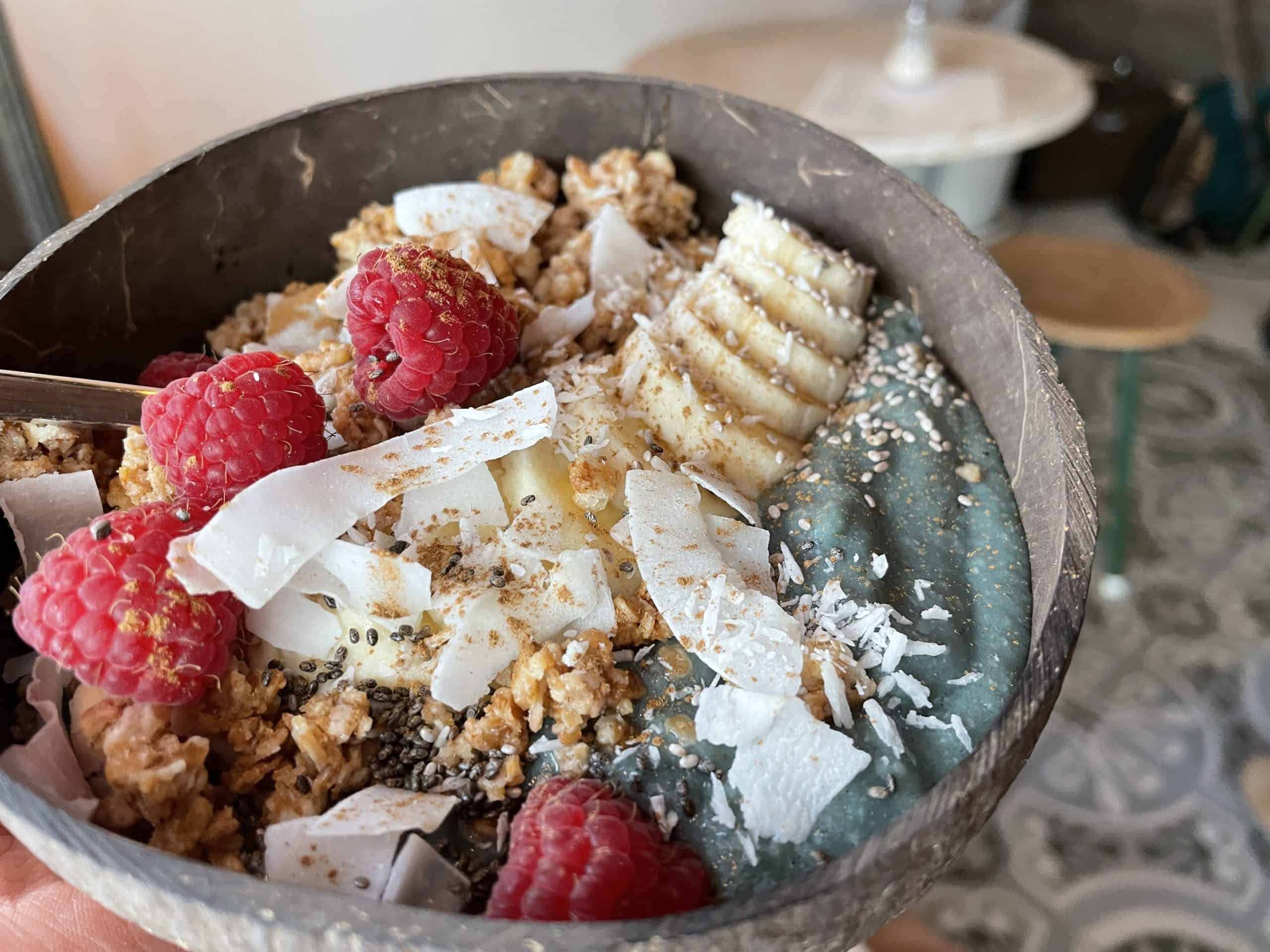 Das Bio Café Blütezeit in der Innenstadt ist ein super Tipp für gesundes Frühstück in Wien. Hier kommen ausschließlich zertifizierte Bioprodukte auf den Tisch. Der Großteil der Gerichte ist obendrein vegan. Es gibt belegte Brote, hausgemachte Mehlspeisen und Süßes wie Pancakes. Uns haben es die Frühstücksbowls angetan, die Porridge-Varianten sind der Hammer. Getoppt mit Beeren, Nüssen, Kokosflocken, Chiasamen und anderen Superfoods sind sie der ideale Start in den Tag und liefern jede Menge Energie.