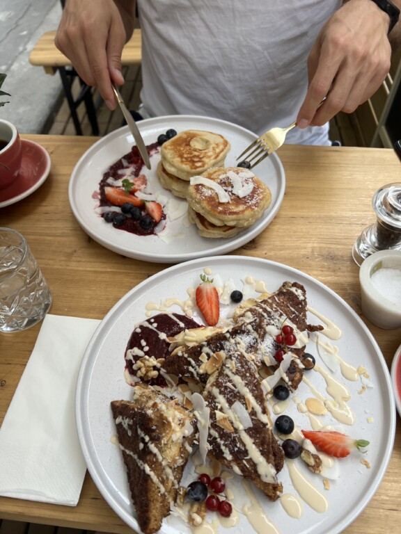 Bei Zina und Andrés entzückendem Lokal in der Gumpendorfer Straße bekommt ihr gesunden Brunch und Lunch. Das Essen ist frei von raffiniertem Zucker, dafür voller Liebe, denn die meisten Rezepte sind bei Reisen des Paares entstanden. Die beiden achten bei allen Gerichten darauf, dass die Nährwerte ausgewogen sind, ohne, dass darunter der Geschmack leidet. Es gibt sowohl vegane und vegetarische als auch Fleischgerichte. Unsere Favs: Bananen Protein Pancakes und Kaiserschmarrn.