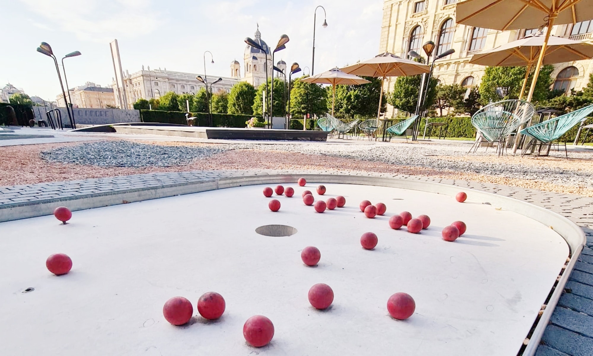 Minigolf mitten in der Stadt ist beim MuseumsQuartier möglich. Im Skulpturenpark vor dem MQ ist eine ganze Minigolf-Anlage verbaut, die ihr von März bis Oktober täglich bis 22 Uhr nutzen könnt. Die Nutzungsgebühr beträgt 6 Euro für Erwachsene, Equipment bekommt ihr beim türkisen Kiosk, wo ihr auch Paninis und weitere kleine Snacks sowie Getränke und Eis bekommt.