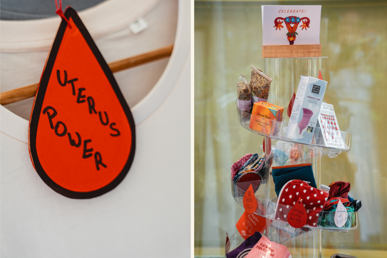 Angelika: Das ist passiert, als ich ein Geschenk zur ersten Periode packen wollte und nach Produkten gesucht habe. Da habe ich zum ersten Mal festgestellt, dass es das überhaupt nicht gibt – einen Laden oder Ort, an den man gehen kann, der sich diesem Thema widmet. Ein Thema, das uns alle betrifft. Und ich sage bewusst „alle“, zumindest aber mal 50 Prozent der Menschen sowieso. Ich fand das empörend. So hat mich das Ganze gefesselt und nicht mehr losgelassen.
