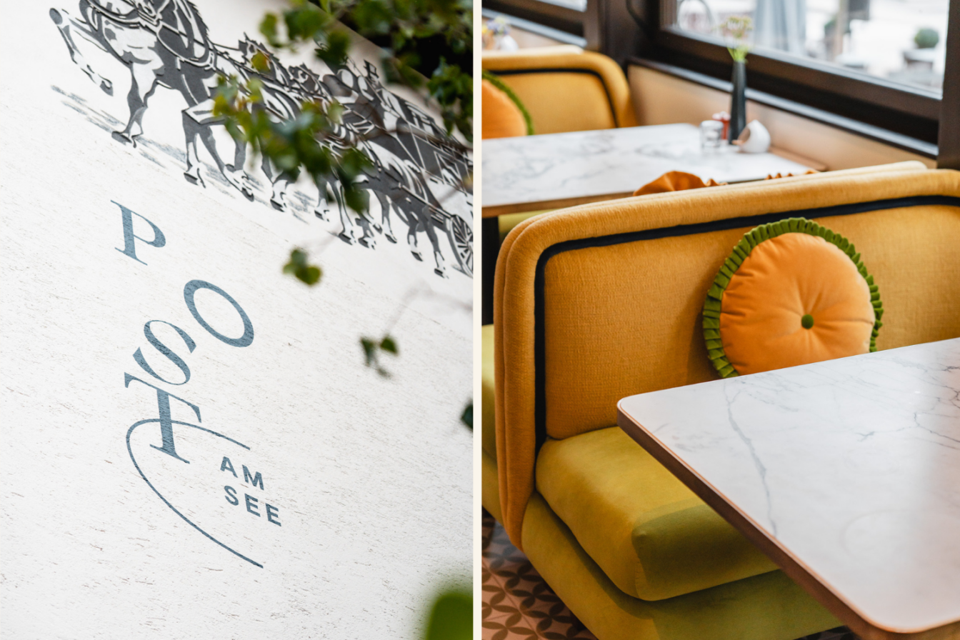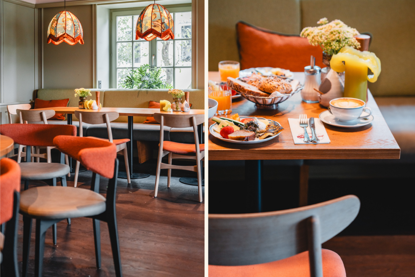 Dass das Haus so viele Jahre auf dem Buckel hat, spürt man heute nicht mehr. Die Gröllers haben erst 2024 neu renoviert und den Staub der Vergangenheit samt altem Look ausgekehrt. Nun strahlt die Post am See im Wes-Anderson-Style, mit vielen Pastelltönen, Stofftapeten und warmem Holz. Dass Design nicht mit Gemütlichkeit und Charme widersprechen muss, kann man hier bestens erleben.