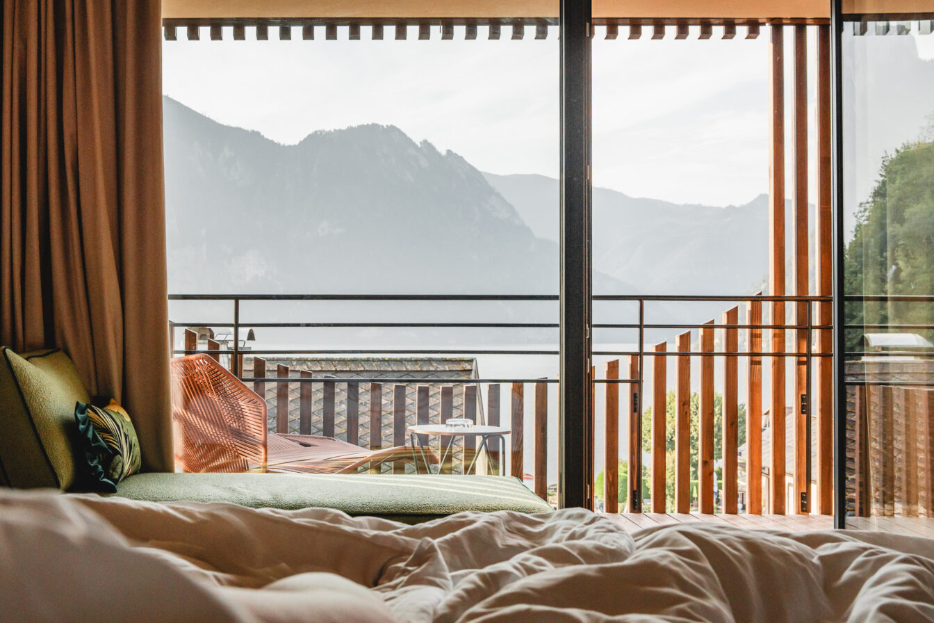 Betthupferl von der Post am See: Design & BergSPA mit Blick auf den Traunsee