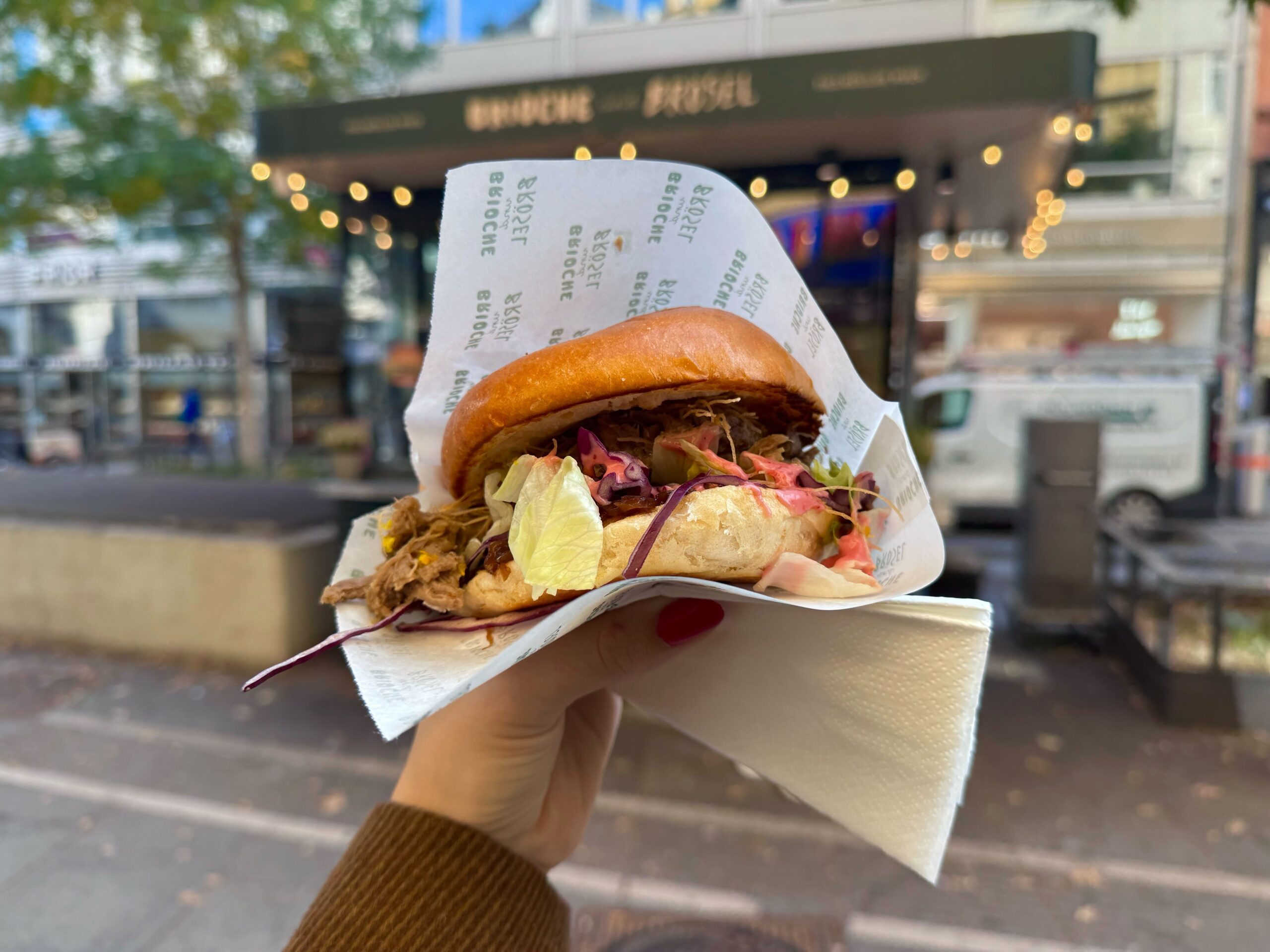 Der Imbissstand Brioche und Brösel im 1. Bezirk in Wien tischt gerade Gansl Burger zum Mitnehmen auf. Ich habe das gute Stück bereits probiert und verrate dir, wie’s schmeckt, ob es sich auszahlt und ob es auch wirklich Gansl-Feeling liefert.