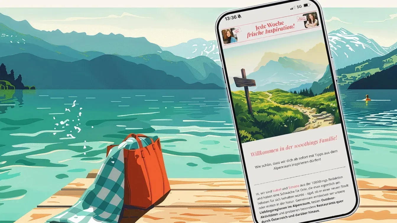 Du liebst es, die schönsten Plätze in der Natur, Outdoor-Erlebnisse, Berggipfel und die coolsten Städte in Österreich und darüber hinaus zu entdecken? Dann bist du bei uns genau richtig. In unserem 1000things Magazine–Newsletter nehmen dich die Redakteurinnen Simone und Isabel mit auf ihre ganz persönliche Entdeckungsreise in der Alpenregion.