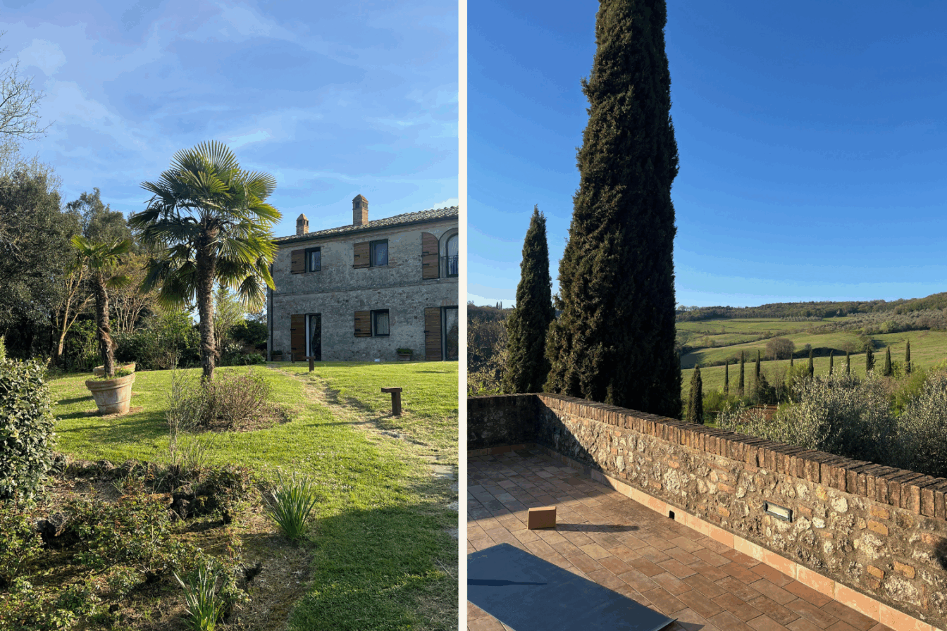Etwa eine halbe Stunde Autofahrt trennen die Bagni de Petriolo von der Villa Giuncheto – unserem absoluten Traumhaus in der Toskana. Zur Villa gehört ein großer Garten, ein eigener Wald samt Olivenhain, ein Pool und, wenn man möchte, eine Haushälterin, die euch das beste italienische Essen kocht, das eure Lippen je berühren werden.