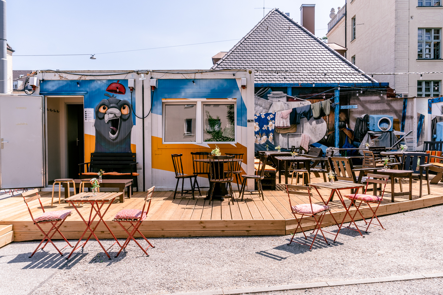 Zwischen Lampions, restaurierten Holzmöbeln und bunten Blumenkästen vergisst man hier glatt, dass man sich in München befindet. Das Café Steinchen in Laim mit dem orangen Bauwagen, der als Küche und Kiosk dient, ist der perfekte Ort, um vom Trubel der Stadt herunterzufahren. Auf dem Geschirr, das an Omas vergessene Kellerfunde erinnert, kann man sich von Frühstück mit Müsli, über Kuchen, bis Salate und Snacks durch den Tag futtern. Hausgemachte Limonaden, Schorlen und Münchner Biere ergänzen die Karte. Ihr könnt den Gastgarten übrigens auch für Events mieten.