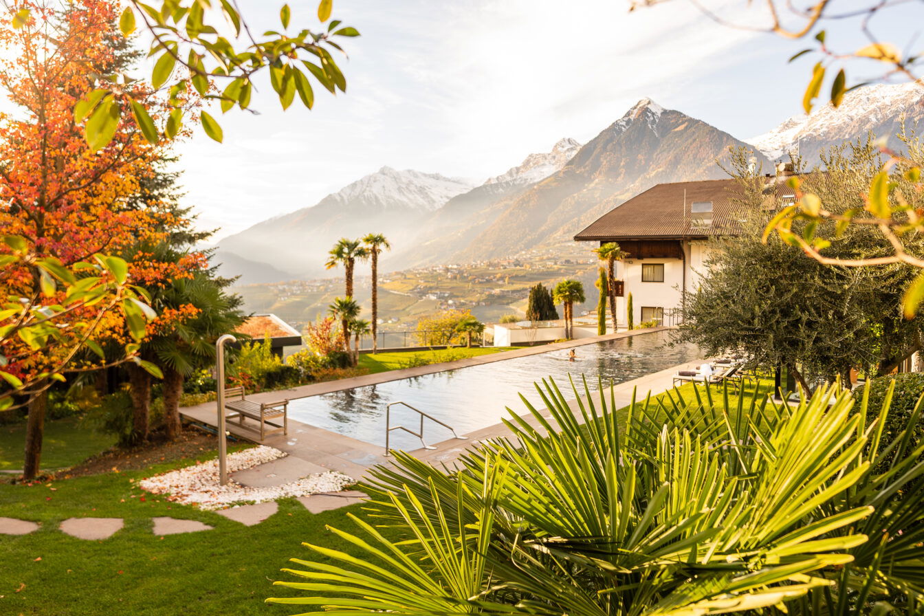 Im Hotel Hohenwart nächtigt es sich mit Blick auf Meran ganz wunderbar. In dem von Familie Mair familiengeführten Wellnesshotel erwartet euch unter anderem eine weitläufige Gartenanlage samt Outdoor-Pool sowie 94 moderne Suiten und Zimmer.