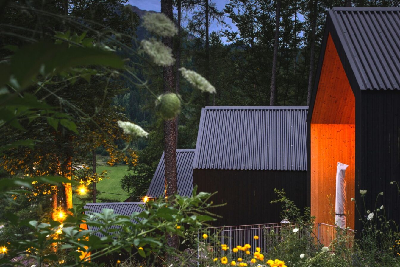 Eingebettet in einen dichten Lärchenwald bei Brand in Vorarlberg fühlt man sich in den Waldchalets Brandnertal sofort geborgen. Der atemberaubende Blick auf den höchsten Berg des Rätikons macht jeden Morgen zum Naturerlebnis. Fünf moderne Chalets, 2020 eröffnet, wurden mit heimischem Fichtenholz maßgefertigt und verbinden minimalistisches Design mit warmem, alpinem Charme.