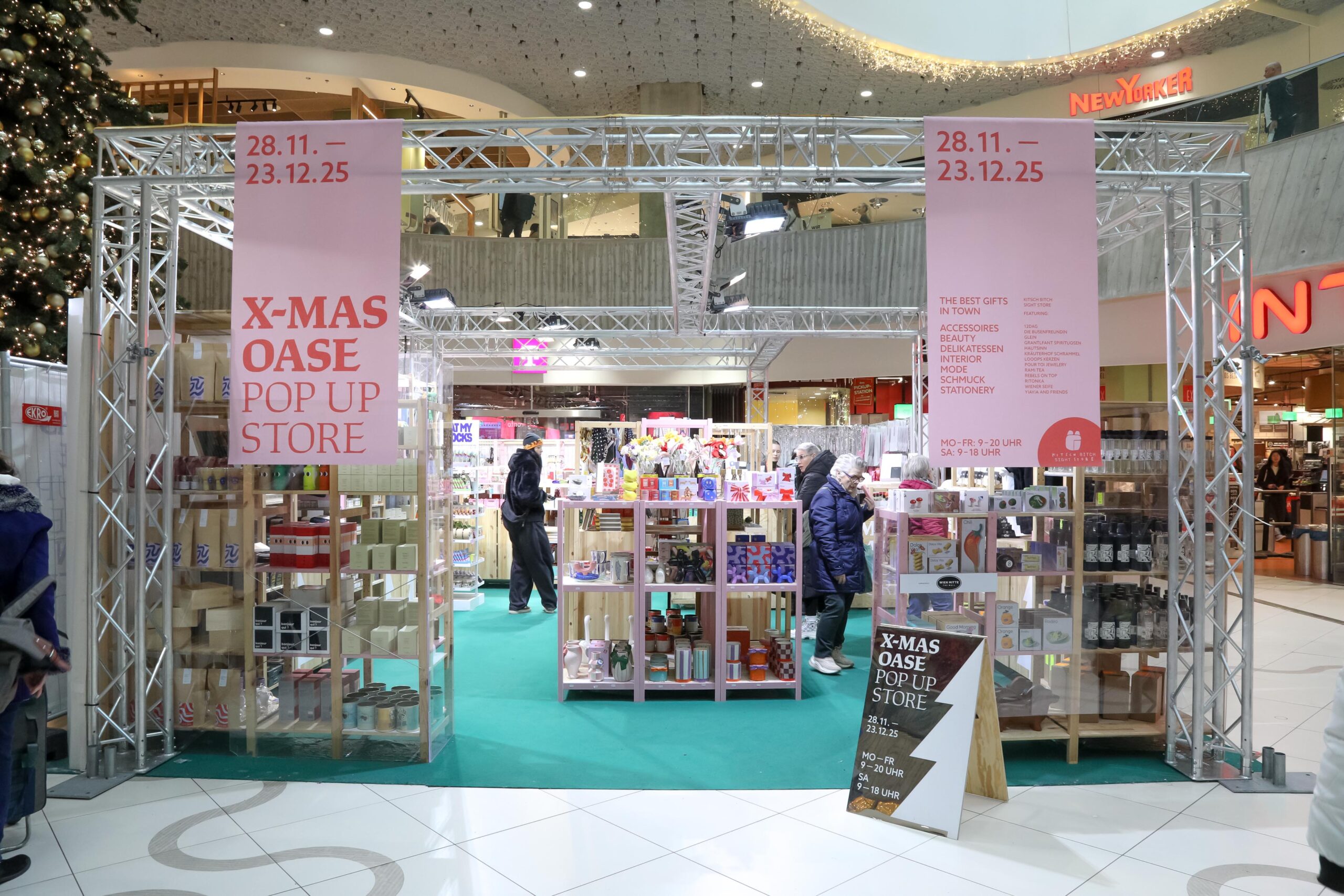 Weil aber nicht alle in der privilegierten Lage sind, Weihnachtsgeschenke kaufen zu können, bringt das Pop-up auch wieder einen Charity-Aspekt mit sich: Bereits zum fünften Mal sammelt das Kaufhaus die Wünsche der Bewohnerinnen des Mutter-Kind-Haus (MUKI) der Caritas Socialis im 9. Bezirk. Rund um den Christbaum im Erdgeschoß der Mall werden Weihnachtswünsche deponiert, die ihr, wenn ihr wollt, erfüllen könnt.