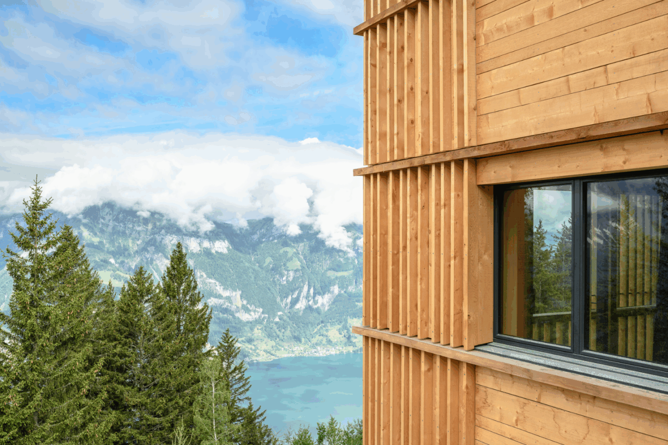 Nachhaltigkeit zeigt sich in jedem Detail: lokale Materialien, Mondholz, Erdsonden-Heizung, Quellwasser und die Reduktion von Elektrosmog. Sogar das WLAN schläft nachts, für echten Digital Detox.