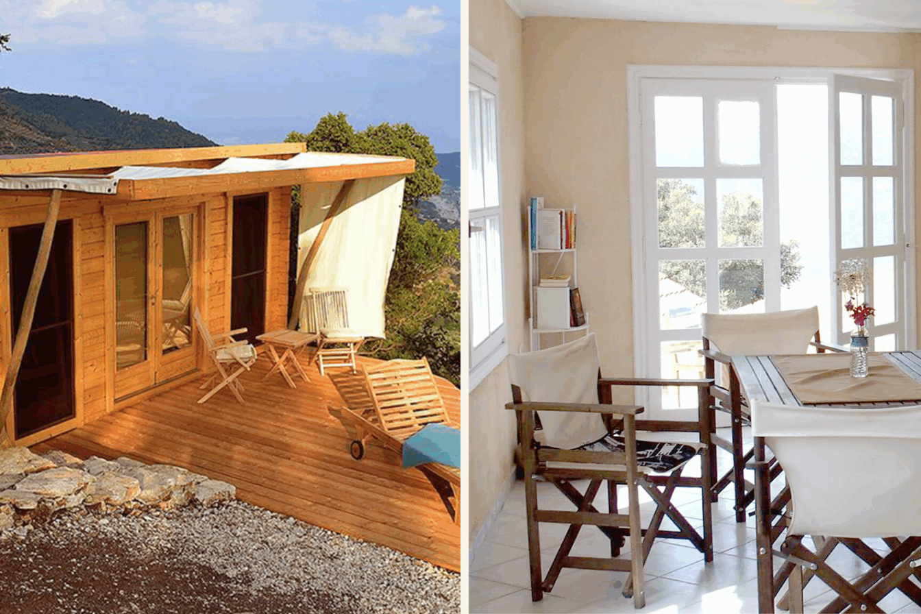 Etwas erhöht auf einem bewaldeten Plateau gelegen, blickt das Home of Silence weit über die Berge bis zum Tempel des Apollon und hinunter zum ionischen Meer. Rundherum: Natur, Stille und ganz viel Weite. Die Lodge schmiegt sich in die Landschaft, ohne sie zu verändern.