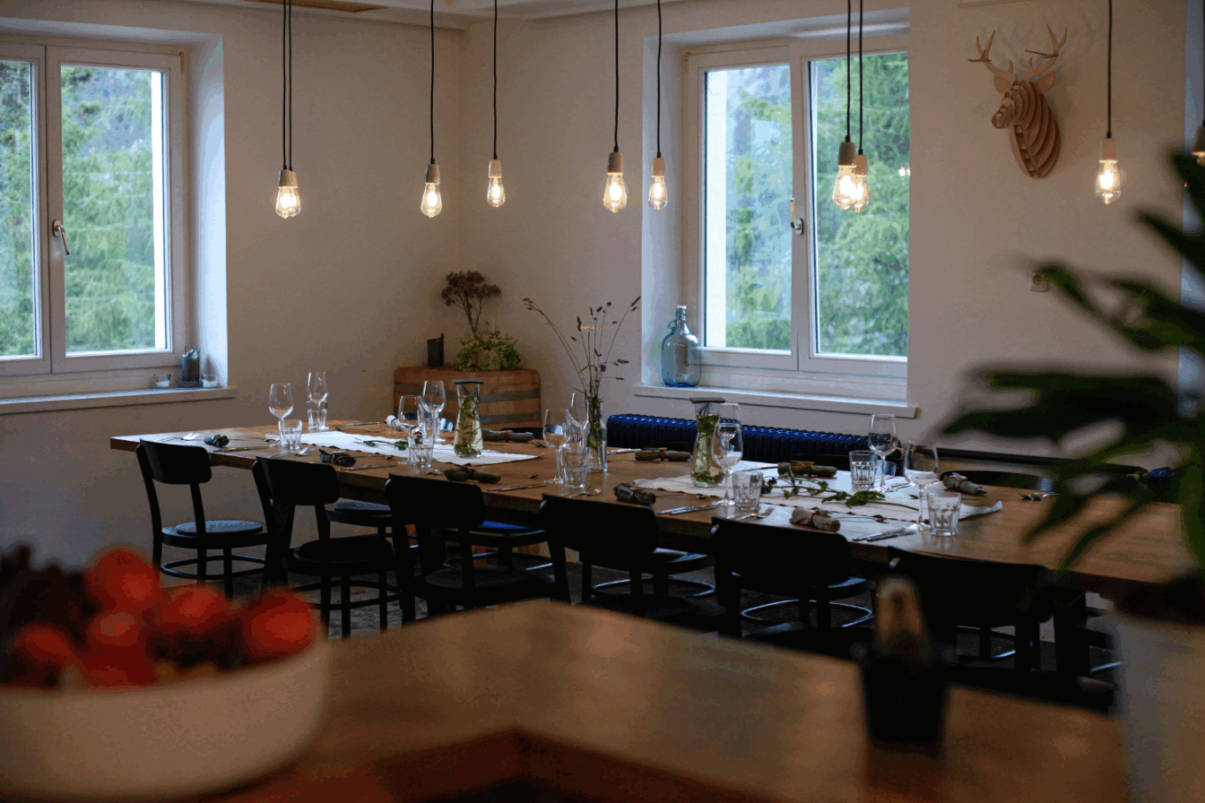 Die ehemalige Berghütte wurde liebevoll renoviert und zu einem modernen Retreat umgebaut. Die Gastgeber*innen Sophie und Tobias verbinden Outdoor-Aktivitäten mit bewusster Entschleunigung: morgendliche Yogaklassen im Panoramastudio, geführte Wanderungen im Sommer, Schneeschuhwanderungen und Skilanglauf im Winter. Danach entspannt ihr im holzbefeuerten Hot Tub mit Blick auf die Dreitausender. Der lange Esstisch ist zum gemeinsamen Genießen da, vegane 3-Gänge-Menüs aus Bio- und Regionalzutaten versorgen euch mit genügend Energie.