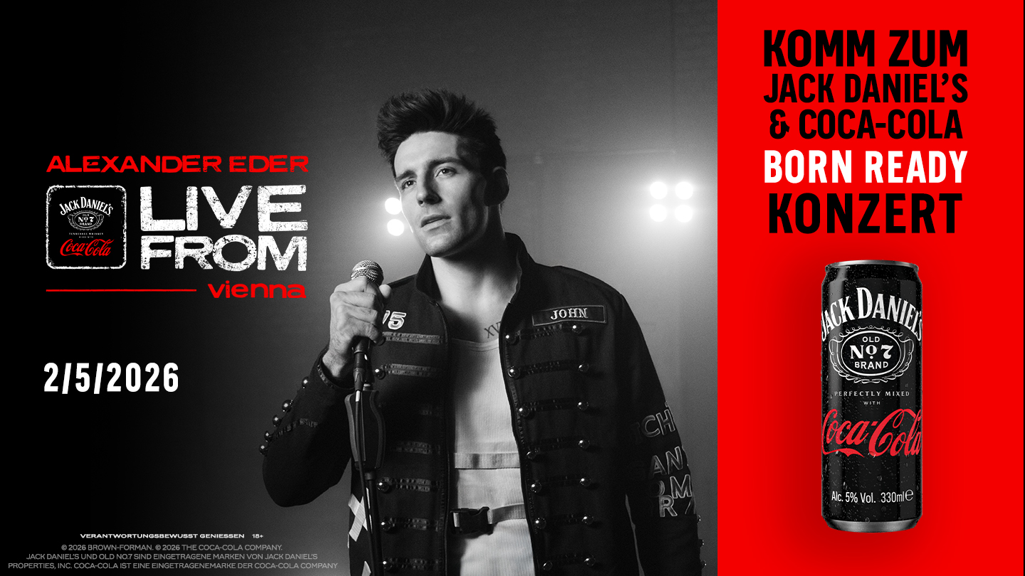 Wir geben zu: Auch wir nutzen Musik manchmal einfach als Hintergrundgeräusch. Dabei gibt es wirklich nichts Feineres, als mitten in der Menge zu stehen, den Bass so richtig zu spüren und einfach live dabei zu sein. Genau dieses Gefühl könnt ihr euch schon bald im Wiener Flex abholen: Am 2. Mai 2026 laden Jack Daniel’s und Coca-Cola zu Live from Vienna mit Alexander Eder. Freut euch auf ein besonderes Konzert in cooler Location, ein Meet-and-Greet und Gänsehaut pur. Was euch erwartet und wie ihr zu Tickets kommt? Verraten wir euch hier.