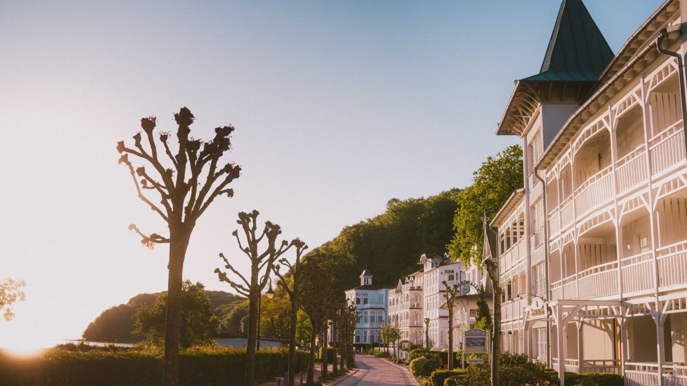 Am östlichen Teil der Insel Rügen liegt die Binzer Bucht, wo unser Ostseeurlaub startet. In Binz selbst könnt ihr euch erstmal ganz entspannt einen Überblick verschaffen: ein Spaziergang entlang der Promenade, vorbei an charmanten Cafés und der charakteristisch weißen Bäderarchitektur. Denn in Binz ist die Architektur nicht nur hübsches Beiwerk, sondern ein großer Teil des Erlebnisses. Entlang der Strandpromenade flaniert ihr an den strahlend weißen Villen mit ihren filigranen Holzveranden und verspielten Türmchen vorbei, die um 1900 entstanden sind – und bis heute diesen ganz eigenen Ostsee-Charme versprühen.