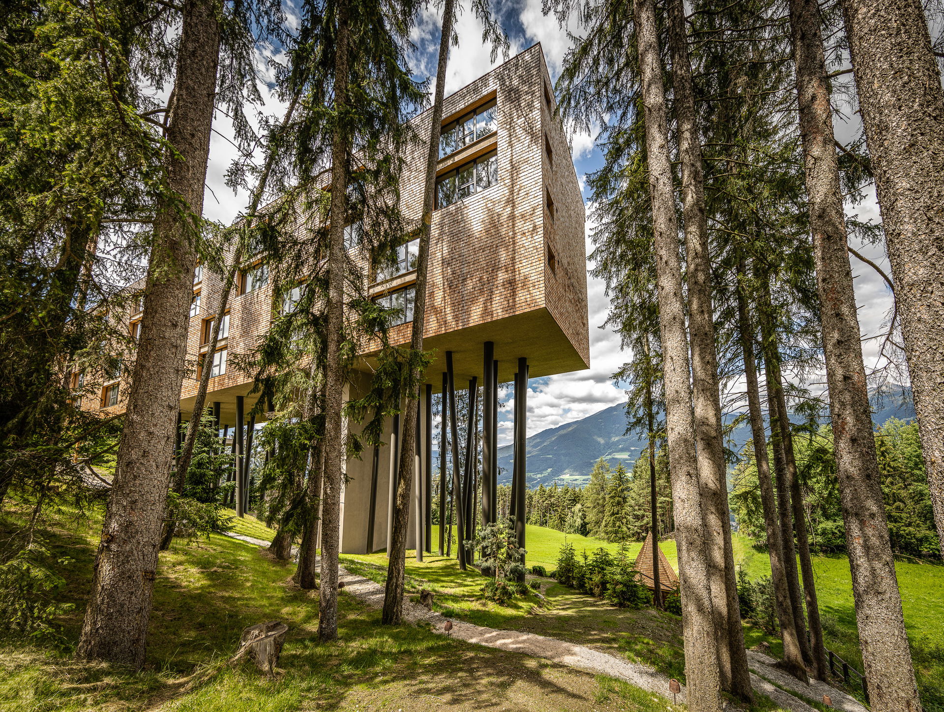 Manche Hotels haben Aussicht. Dieses hier hat gleich ein ganzes Ökosystem. Das My Arbor – Dolomites bei Brixen hängt nämlich – im besten Sinne – ein bisschen in der Luft: auf 34 Meter hohen Stelzen, mitten im Wald am Hausberg Plose. Ein Baumhaus für Erwachsene, nur dass statt Räuberleiter und Stockbett hier Design, Spa und Fünf-Sterne-Komfort warten. Ein echter Kindheitstraum, aber bitte mit Infinity-Pool.