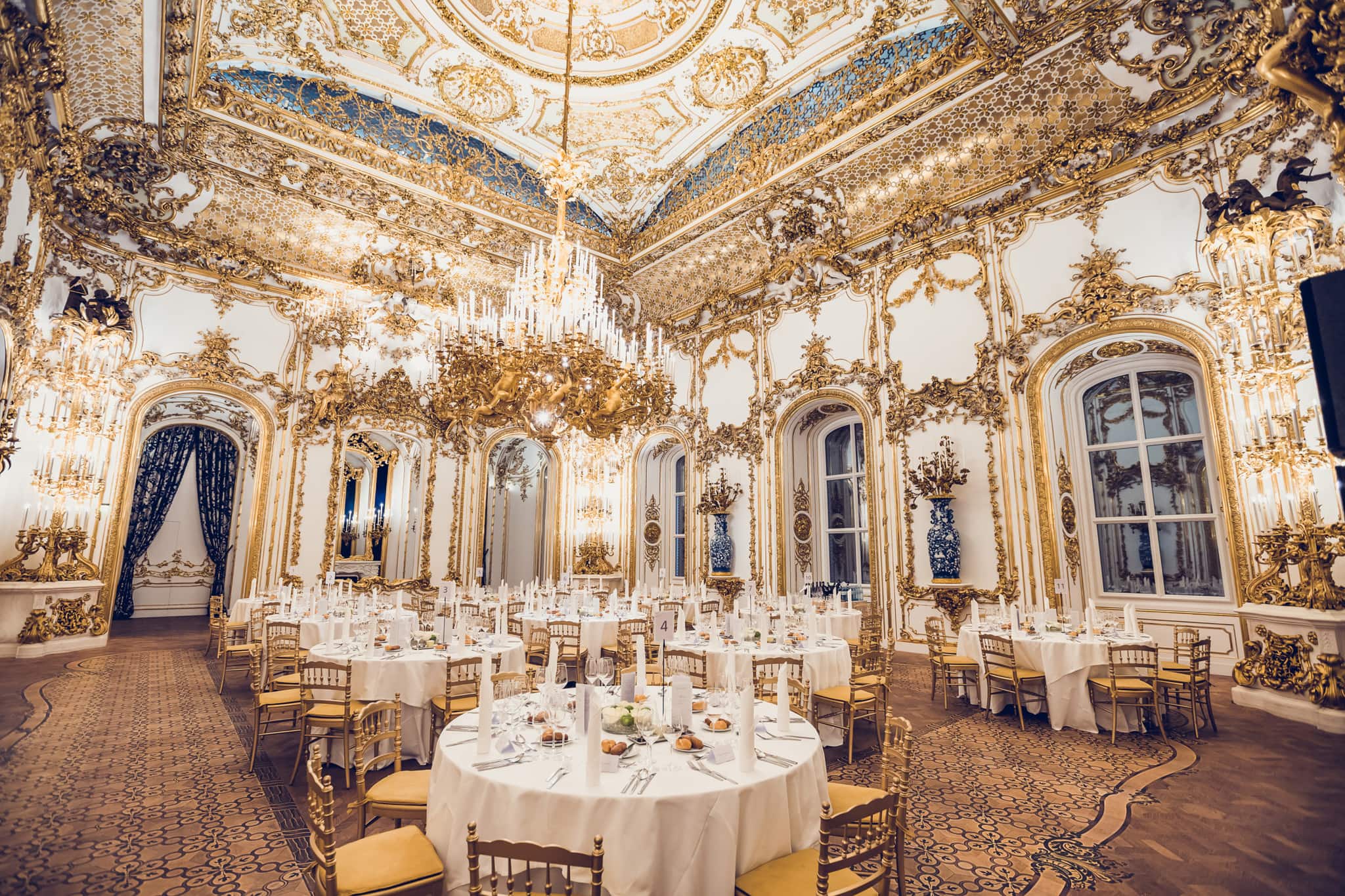 Aber genug der Vierbeiner-Konkurrenz: In der Spanischen Hofreitschule könnt ihr in unterschiedlichen Räumlichkeiten heiraten: in der Winterreitschule, die bis zu 600 Personen beherbergen kann und ganzjährig zu haben ist, und in den Repräsentationssalons, die ebenfalls ganzjährig zur Verfügung stehen, aber nur 40 bis 90 Personen fassen. Wie der Tag genau ablaufen soll, könnt ihr ganz individuell mit der Hofreitschule selbst vereinbaren.