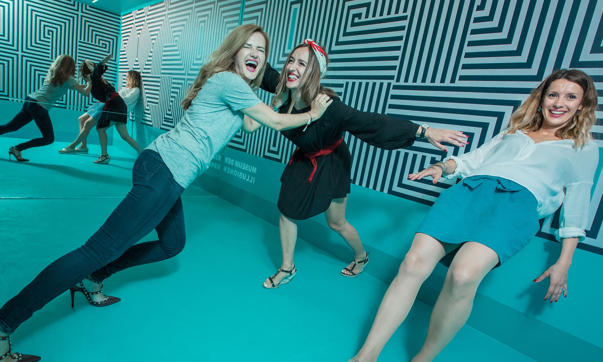 Erinnerungsfotos im Museum der Illusionen knipsen