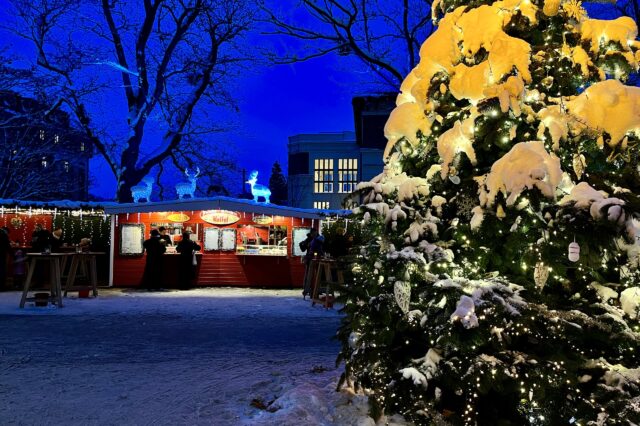 Unter Lichterketten sitzen im Augartenspitz