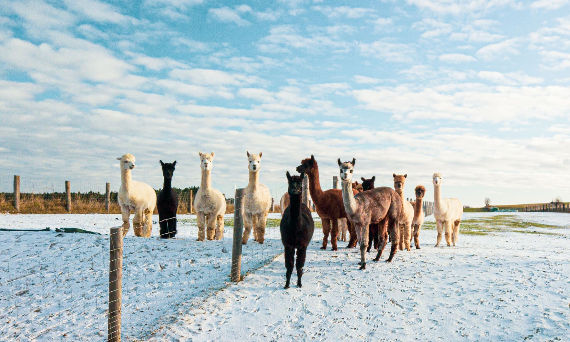 Wenn euch die eisblauen Augen der Hunde unheimlich sind, versucht es doch mal mit anderen flauschigen Gefährten: Auch Lama- und Alpakahöfe in Österreich empfangen euch gerne im Winter. Dazu zählt zum Beispiel der Alpakahof Hahn im Waldviertel.