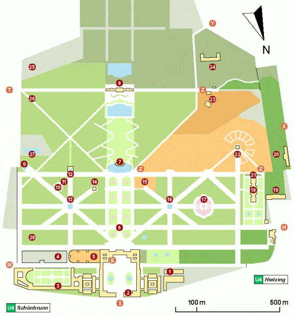 Setzt euren Weg beliebig durch den Park fort in Richtung Hietzinger Tor. Wir haben den Pfad an der Gloriette und am Tiergarten Schönbrunn vorbei gewählt – mit etwas Glück seht ihr Tiere – und sind dann am Palmenhaus vorbei Richtung Hietzinger Platz spaziert. Dort liegt der Endpunkt des Spaziergangs.