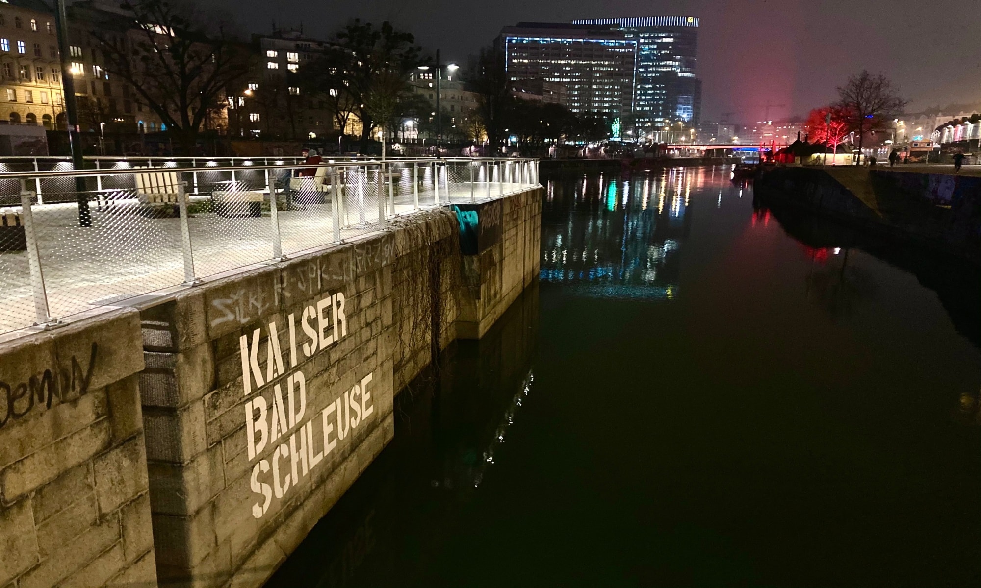 Ihr könnt natürlich auch die Seite vom Donaukanal wechseln. Schaut einfach, wie es für euch am besten passt. Die Lichter und die Stimmung am Abend vor Ort haben auf jeden Fall eine große Sogwirkung. Nun geht es noch runter bis zur Urania-Sternenwarte oder, wenn die Füße noch nicht schmerzen, natürlich auch noch weiter.