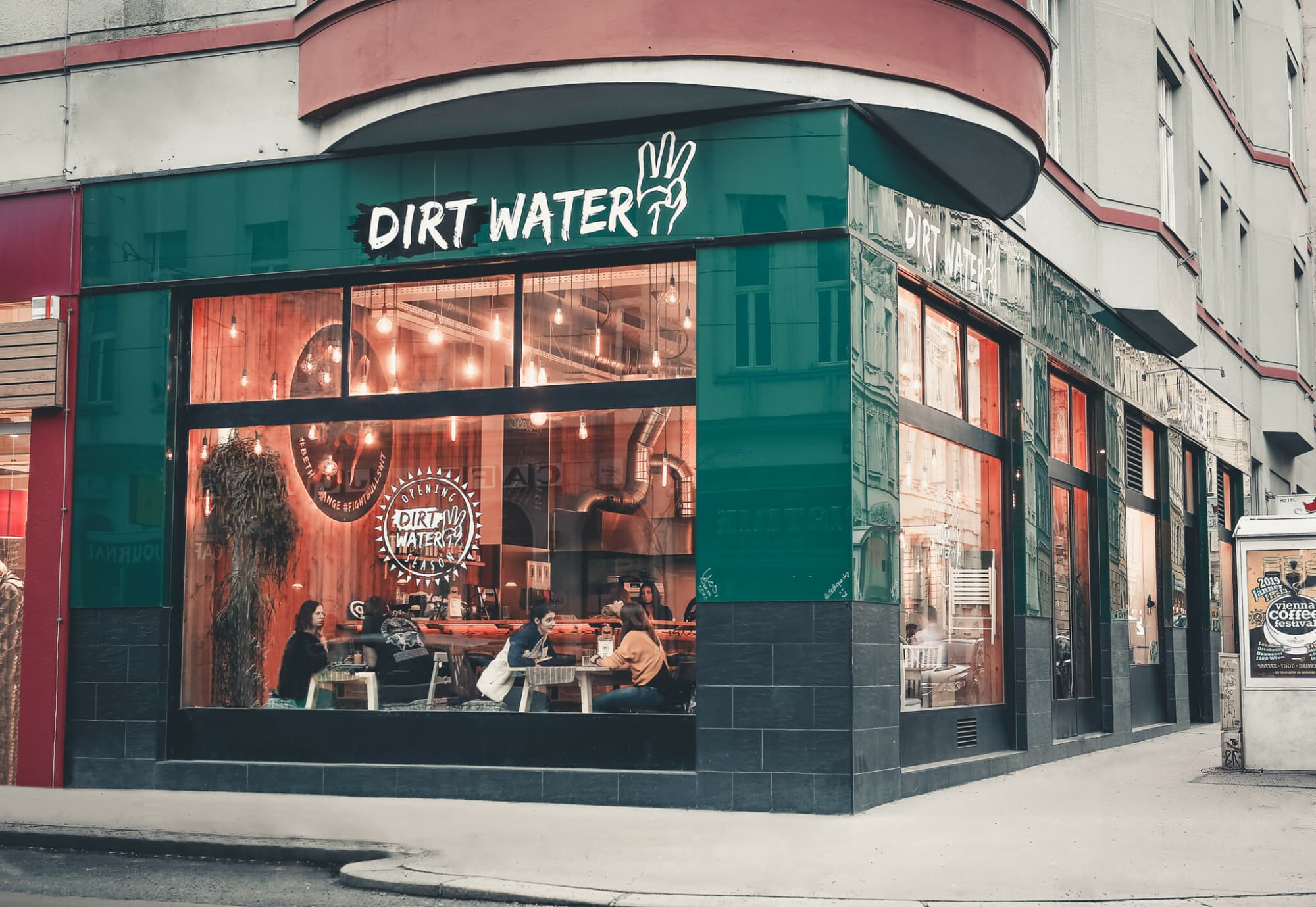 Wir starten unseren Roadtrip im Hipster-Mekka Neubau, wo sich kleine Boutique-Cafés an schicke Concept-Stores reihen. Weil ein sinkender Blutzuckerspiegel bekanntlich die größte Bedrohung für jeden Roadtrip darstellt, stärken wir uns hier ausgiebig im Café DirtWater. Das Besondere am DirtWater: Hinter dem gemütlichen Lokal steckt eine NGO, die allen Menschen Zugang zu sauberem Trinkwasser und Sanitäranlagen ermöglichen will. Wie das funktioniert? Der Gastro-Gewinn wird vollständig für Trinkwasserprojekte verwendet, obendrein gibt’s jede Menge Möglichkeiten, sich im Kollektiv zu engagieren. Und das alles in einer entspannten Atmosphäre, die jedes Designer*innen-Herz höherschlagen lässt: Hier treffen natürliche Holzwände auf raue Blechelemente und der Dschungel aus tief hängenden Lampen vervollständigt den schicken Industrial-Charme.