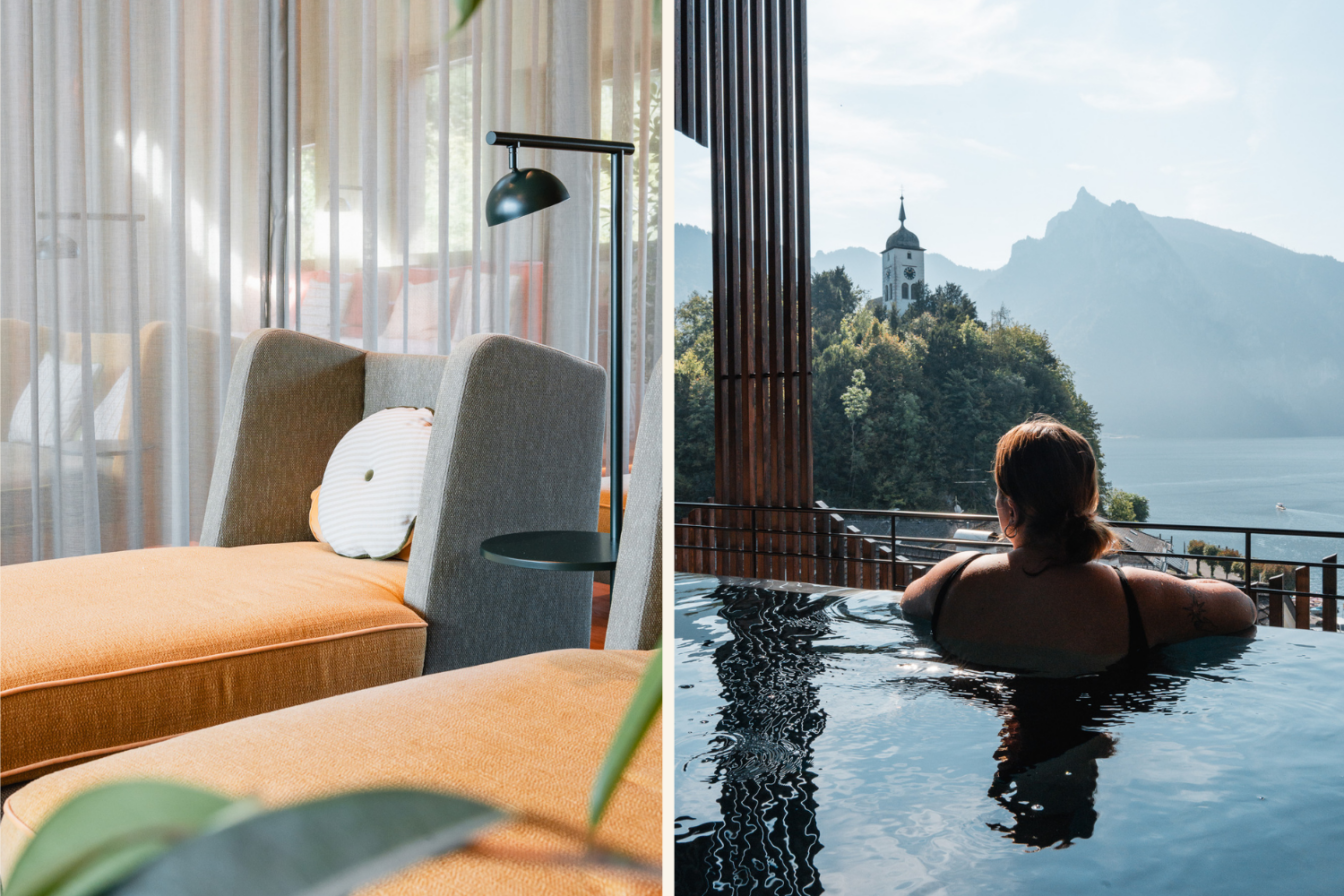 In neuem Glanz erstrahlt das 2024 frisch renovierte Hotel Post am See und überzeugt somit nicht nur durch die traumhafte Lage direkt am Traunsee, sondern auch in Pastellfarben und minimalistischen Designelementen im Wes Anderson Stil zum Wohlfühlen. Daneben überzeugt besonders der SPA-Bereich mit Berg- und Seepanorama inklusive Infinity-Pool und Dampfkabinen sowie das kulinarische Angebot im zugehörigen Belètage auf ganzer Linie. Abends wird euch hier ein köstliches Chefs-Choice-Menü kredenzt, das mit saisonalen Zutaten aus der Region daherkommt. Wer es lieber etwas bodenständiger, klassischer mag, der*die ist in der angrenzenden Poststube bestens aufgehoben.