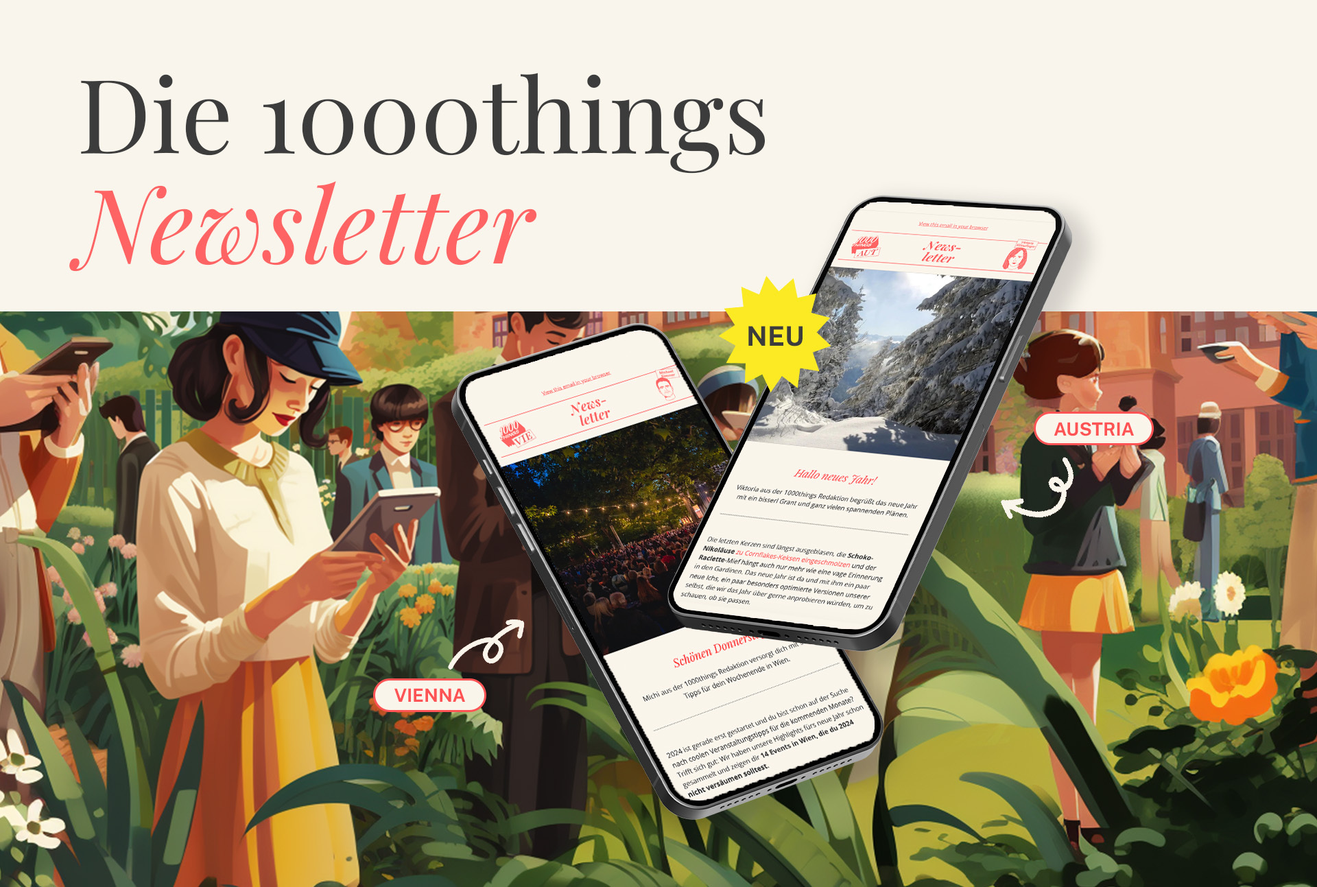 Coole Events für jeden Tag, die spannendsten neuen Restaurants und Bars, schöne Unternehmungen in der ganzen Stadt und exklusive Gewinnspiele: Abonniere unseren 1000things Wien-Newsletter und verpasse keine Tipps mehr!